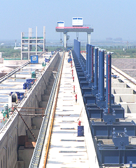 公司專業生產的各類平面、弧型閘門,各類卷揚、門式、移動式啟閉機,各類清污機、攔污柵、升船機、壓力鋼管、錐形閥等超大型、大型水工金屬結構件和各類起重機遠銷全國26個省、市、自治區,并出口到16個國家和地區,廣泛應用于全國重點工程建設,如長江三峽永久性船閘工程、淮河蚌埠閘擴建工程、浙江溫州珊溪水利樞紐工程、四川岷江紫坪鋪水利樞紐工程、浙江省分水江水利樞紐工程、中國河口第一大閘曹娥江攔河大閘和港口、船舶制造企業等。
